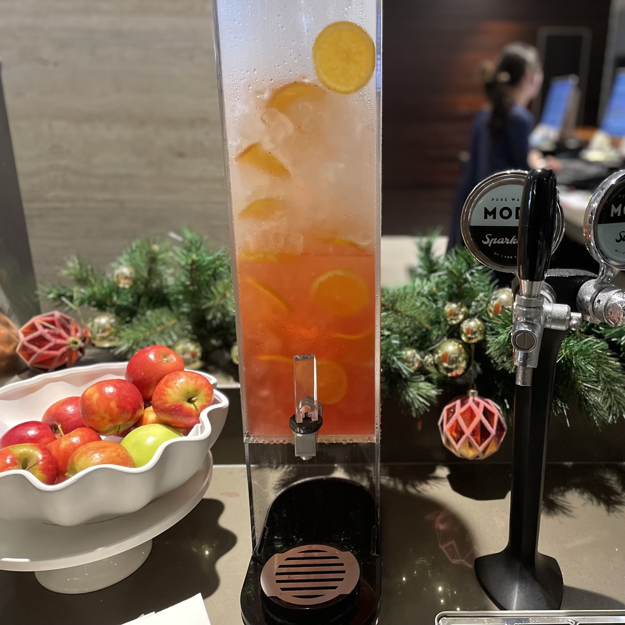 Water naturally flavoured with fruit was a nice touch! Along with bubbles on arrival . . . that's the sparkling water variety!